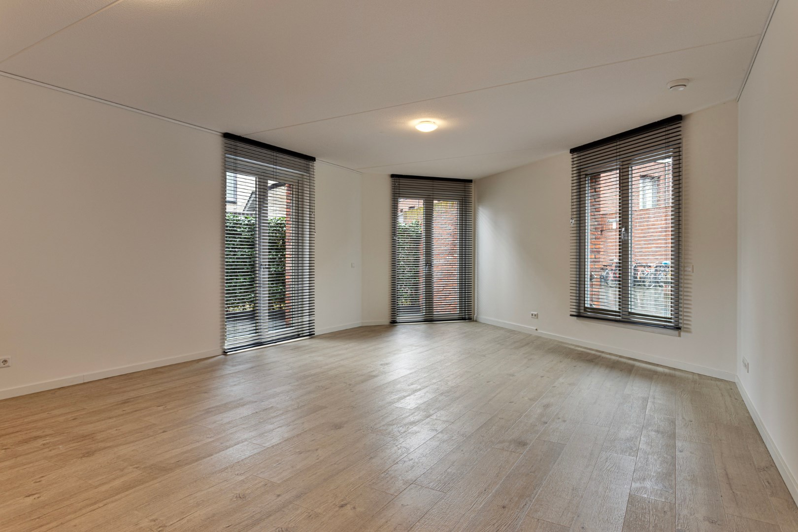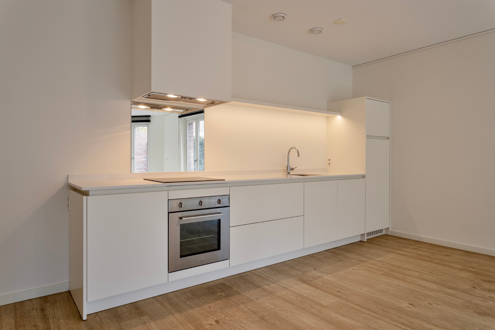 Woonkamer met open keuken, totaal ca. 41 m2. Twee dubbele openslaande deuren geven toegang tot de beschutte tuin ca. 20 m2, die is gelegen op het Oosten/Zuid-Oosten. Ontspan en geniet van de buitenlucht in uw eigen tuin, een zeldzame vondst in het hart van de stad. Perfect voor een kopje koffie in de ochtendzon of een rustige avond onder de sterren. De tuin is tevens via een achteringang te bereiken.