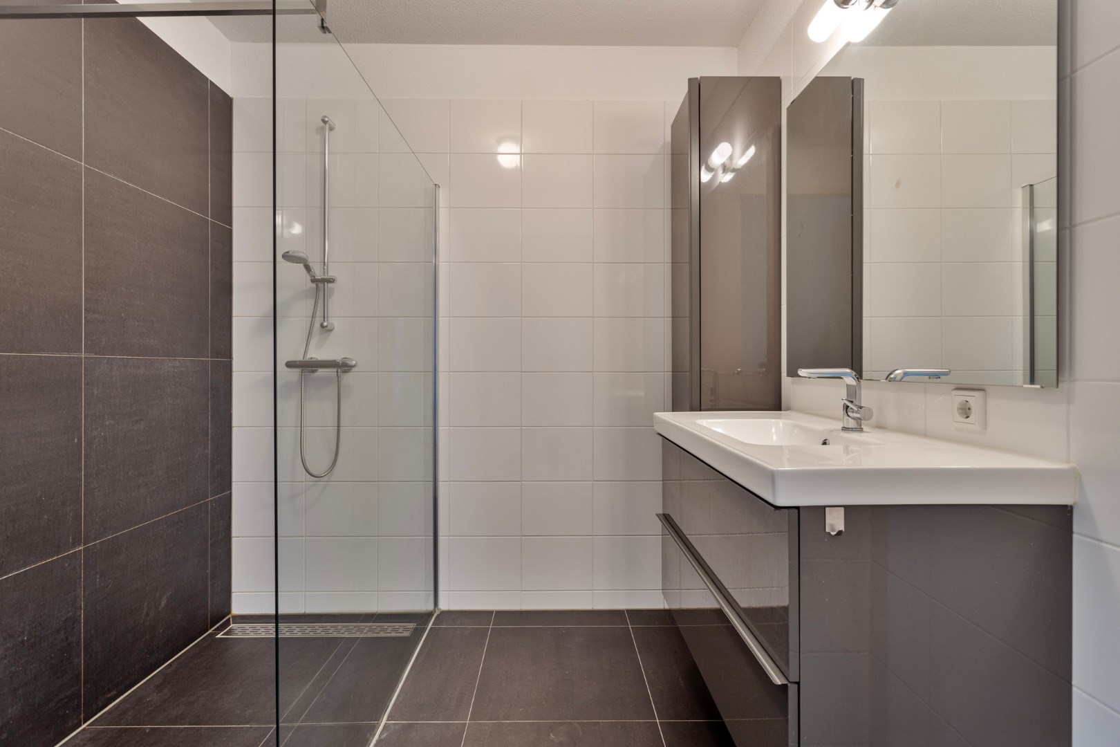 Slaapkamer ca. 18 m2 met directe toegang tot de smaakvolle badkamer ca. 5 m2. De betegelde badkamer is voorzien van inloopdouche met glazen wand en een vaste wastafel in een modern badmeubel..