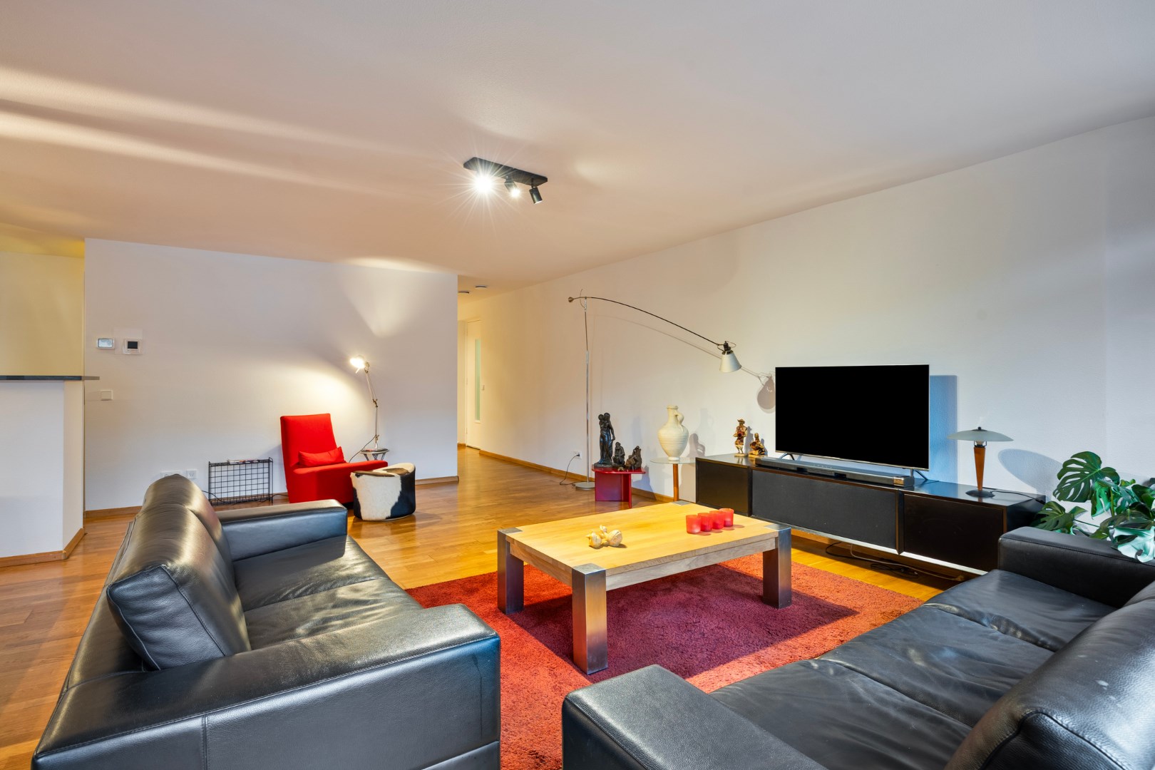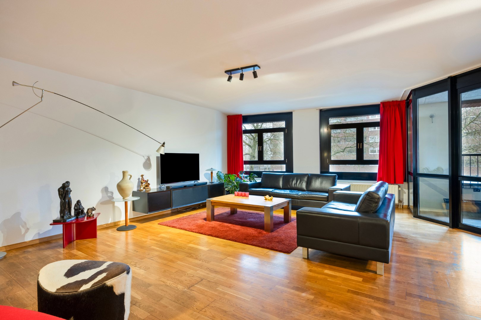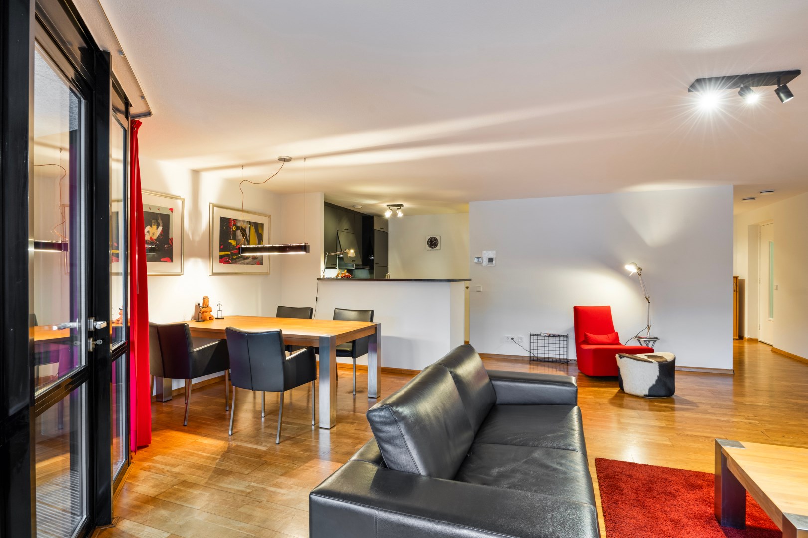 Woonkamer ca. 47 m² met een smaakvol wandmeubel. De woonkamer kijkt uit op de Avenue Ceramique en geeft toegang tot een loggia ca. 6 m² die op het Westen is gelegen.