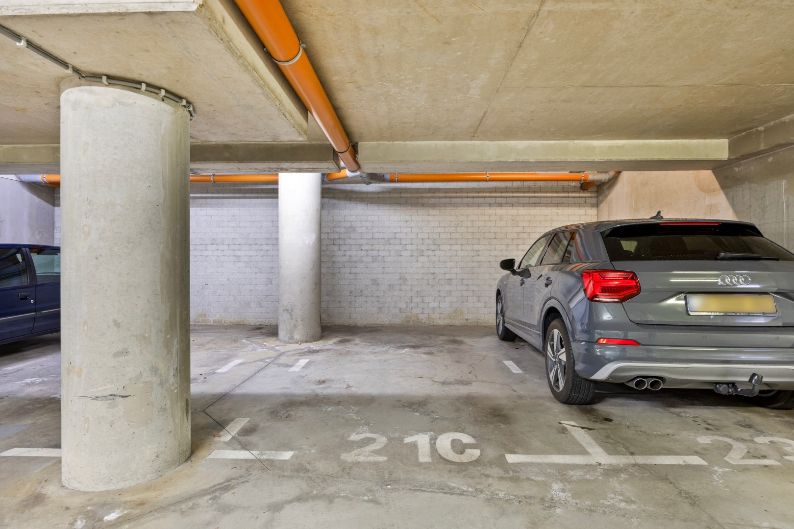 Privé berging en een privé parkeerplaats.