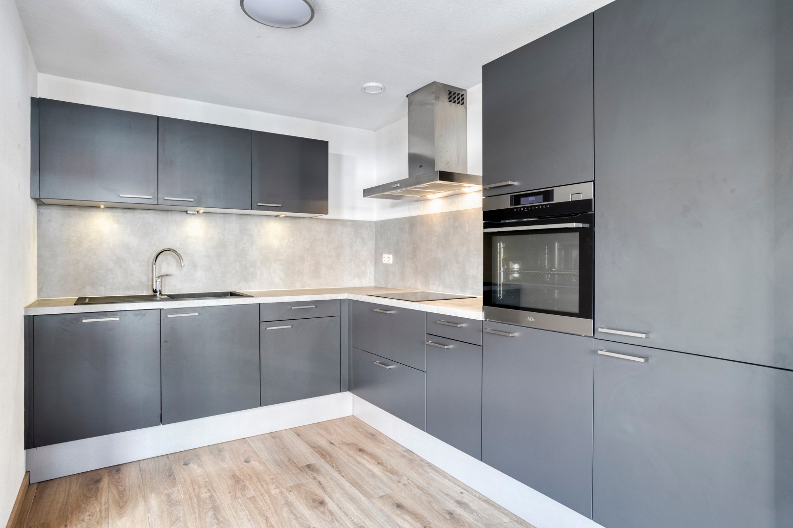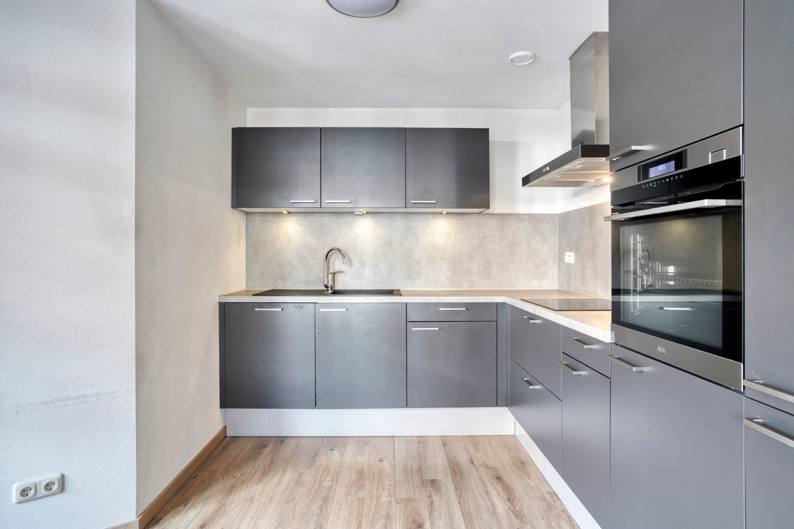 Open keuken met een inrichting die in 2019 werd vernieuwd. De keukeninrichting is in een hoekopstelling geplaatst en is voorzien van een keramische kookplaat, afzuigkap, stoomoven, vaatwasser, koelkast en een vriezer.