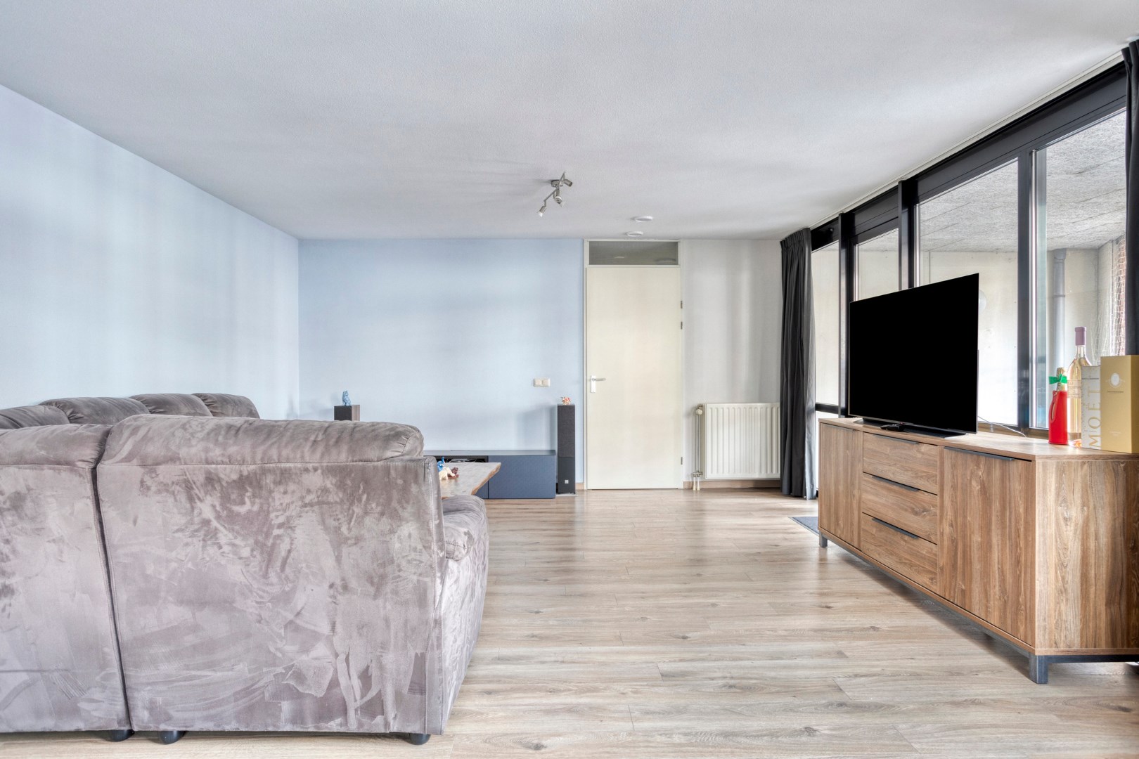 Woonkamer die tevens toegang geeft tot de loggia, ca. 6 m², die op het Oosten is gelegen.
