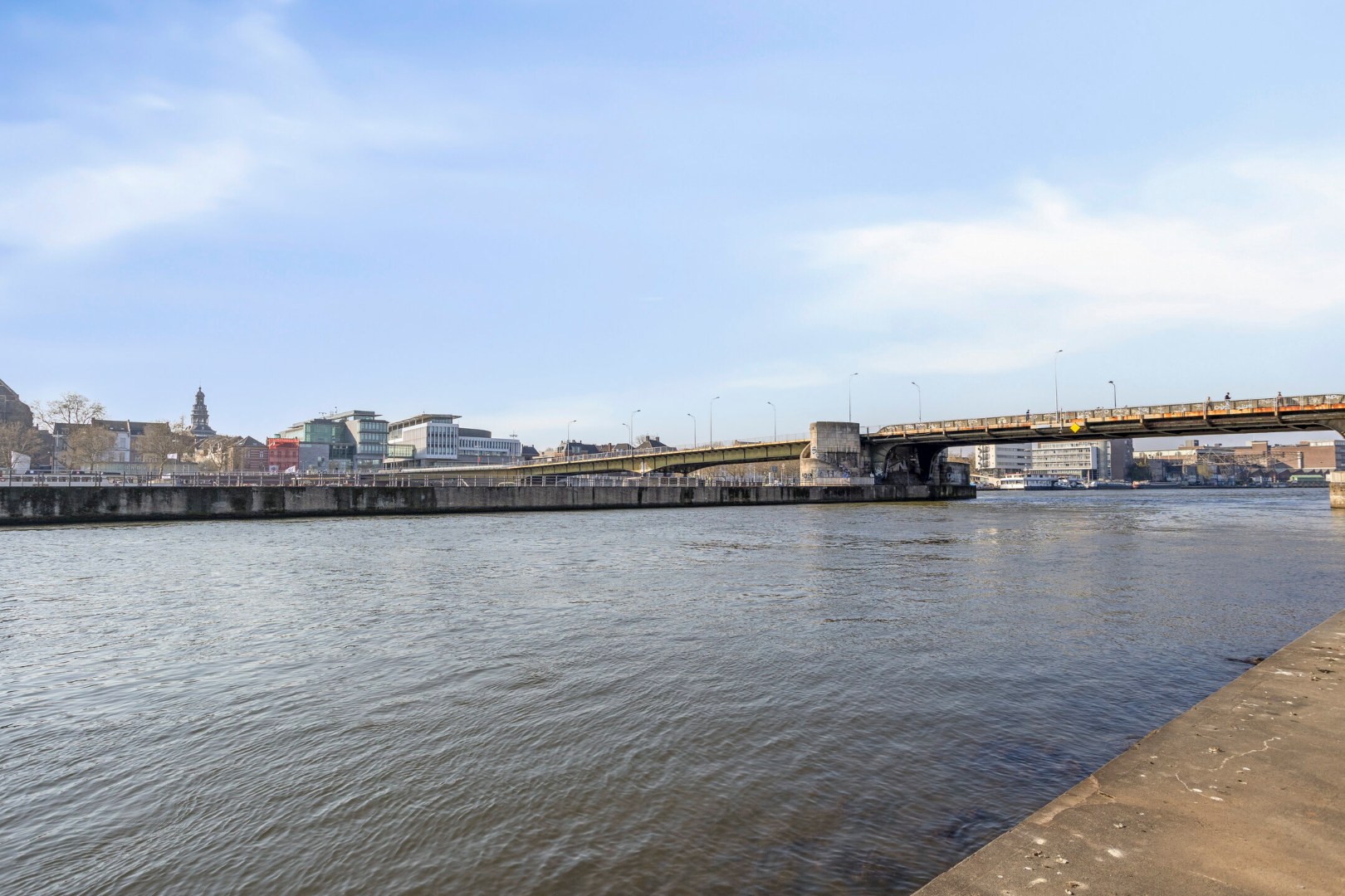 De woonkamer is voorzien van een laminaatvloer. Het Frans balkon biedt een fraai uitzicht op een deel van de Maas en de binnenstad van Maastricht.