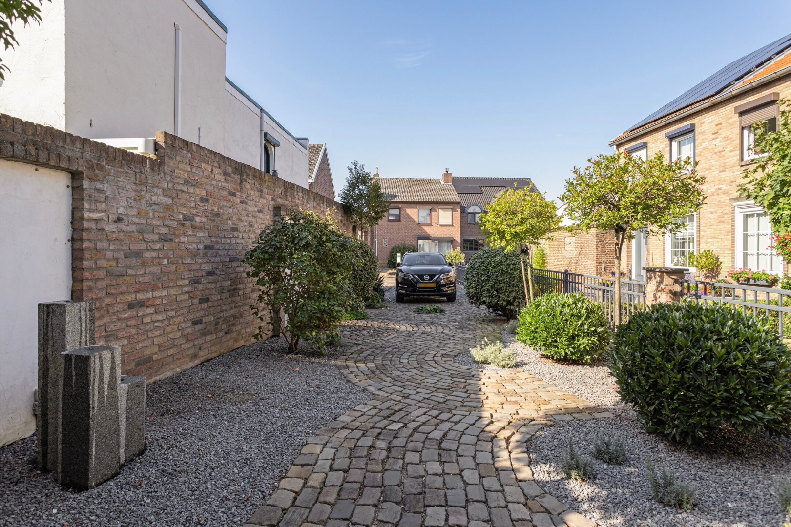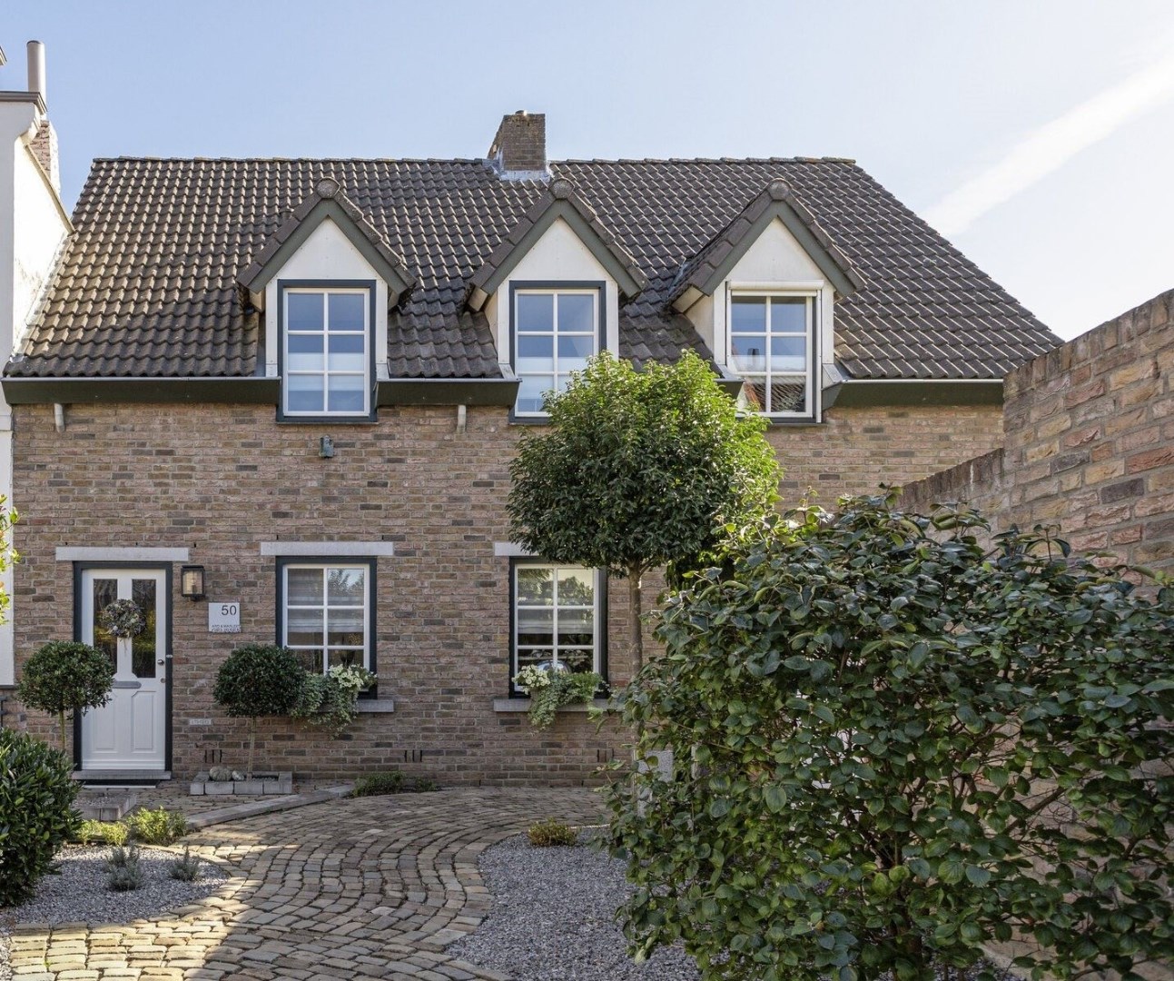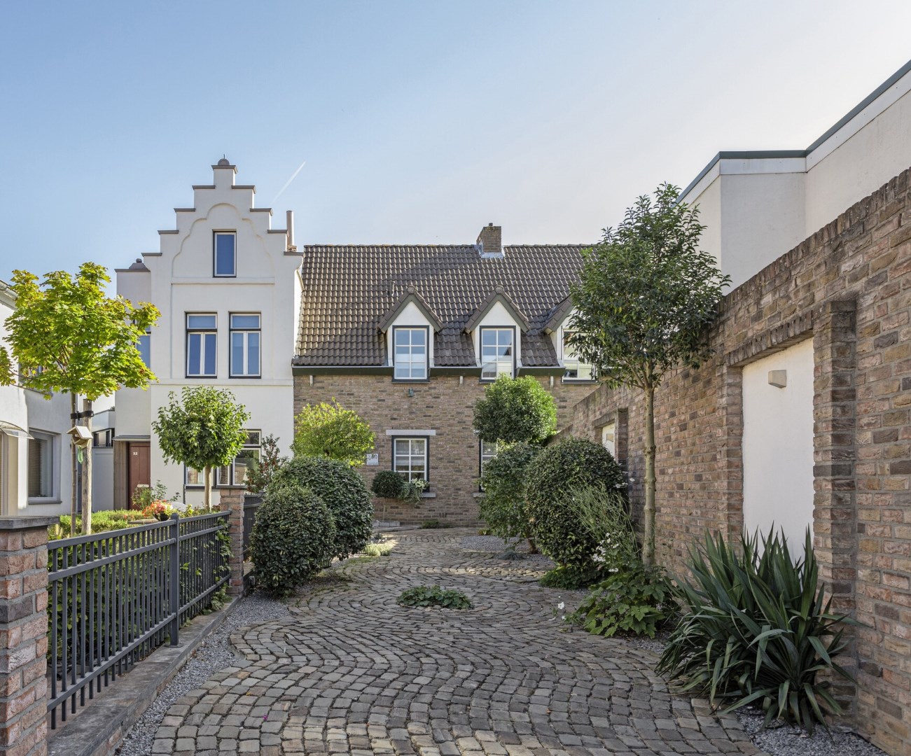 De woning ligt aan een soort “hofje” in de oude kern van Borgharen. De 25 meter diepe voortuin met eigen oprit, gemaakt van authentieke Maastrichtse “kinderkopkes”, geeft toegang tot de woning en biedt plaats voor het parkeren van meerdere auto's. Het huis is gemaakt met authentieke Maastrichtse baksteen.