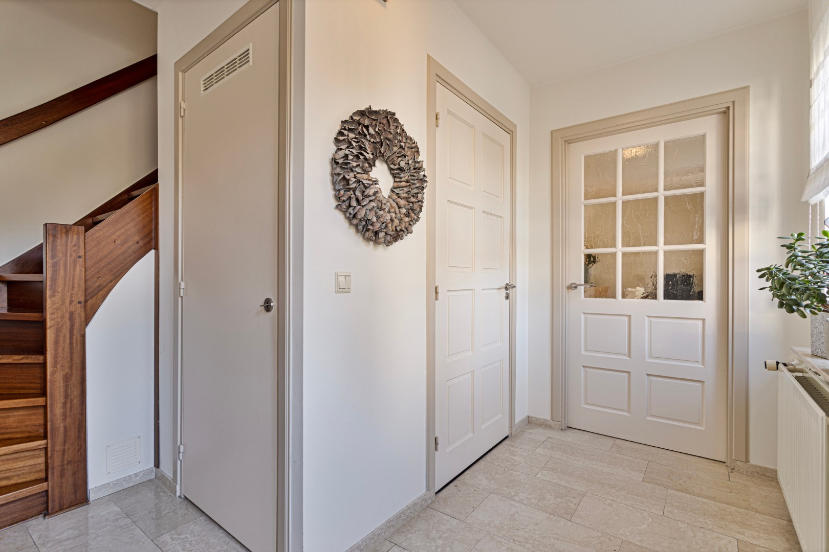 Aansluitend een bijkeuken met plek voor wasmachine en droger, alsmede toegang tot het ruime (overdekte) terras. Boven de bijkeuken is een kleine bergzolder.