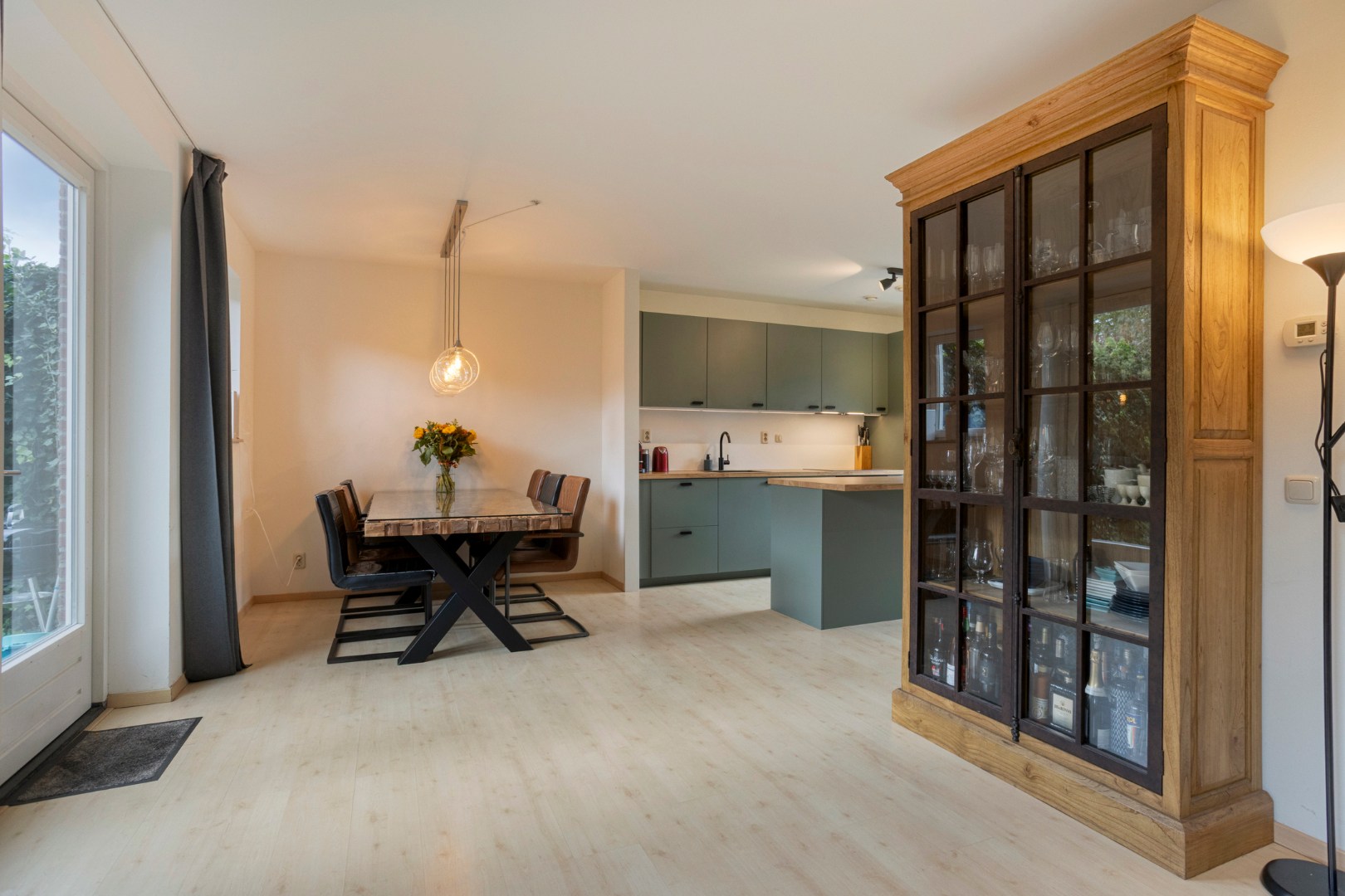 De woonkamer met open keuken vormt het hart van het huis. De keuken is recent vernieuwd en voorzien van een stijlvolle inrichting en moderne apparatuur – een heerlijke plek om te koken en samen te genieten.