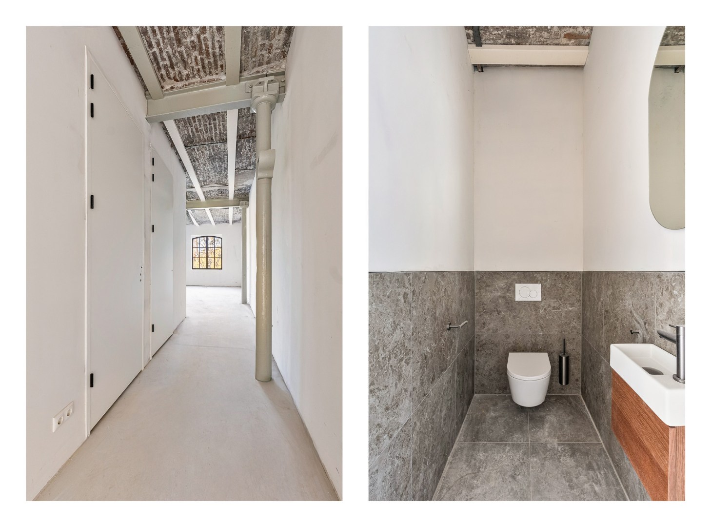 Dit B-type appartement, een tussenliggende woning, heeft een vloeroppervlakte van ca. 99 m2. Het historische, gewelfde plafond dat volledig uit baksteen is opgetrokken, geeft het appartement de looks van een klassieke loft. Het appartement is overzichtelijk ingedeeld: aansluitend op de entree is er een slaapkamer met grote walk-incloset en een ruime badkamer en suite voorzien van een dubbele wastafel, inloopdouche en een toilet. Daarachter volgt de open eetkeuken in een kombuisopstelling met aansluitend de ruime woonkamer waar het zonlicht in de avond binnenvalt. Midden in het appartement bevinden zich nog een separaat toilet en een berging met plek voor een wasmachine en droger.